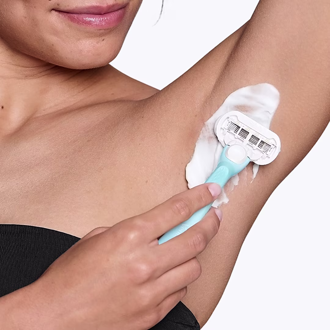 付属のVenus カミソリでお手入れ部位を剃る。